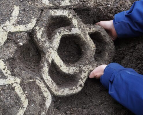 Een schuine aardwal ondersteunen zonder afval in de grond achter…