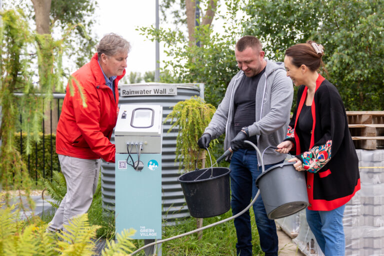 Op The Green Village testen we verschillende innovatieve oplossingen die regenwater lokaal opvangen, zuiveren en hergebruiken. Regenwater kan bijvoorbeeld worden gefilterd met behulp van natuurlijke mineralen en planten, ondergronds worden opgeslagen en later worden ingezet voor toepassingen waarvoor geen drinkwaterkwaliteit nodig is. Denk aan het irrigeren van sportvelden, het wassen van ramen of het doorspoelen van toiletten. Voorbeelden van innovaties die we hier testen en doorontwikkelen zijn BlueBloqs van FieldFactors, Rain shell van Ecologisch Water Beheer en de Rainwater Wall van AAWS. Een deel van deze oplossingen willen we toepassen in Middelsee (Leeuwarden), in samenwerking met Bouwgroep Dijkstra Draisma.