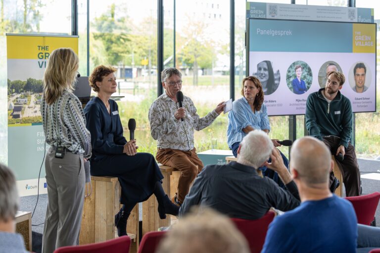Nirul is ook enthousiast over de verschillende groene daken in het KlimaatKwartier. Er wordt onder meer gekeken welke planten de beste resultaten opleveren qua verkoeling, zowel buiten als binnen, én bijdragen aan biodiversiteit. “Maar dan wel in verhouding tot het gevergde onderhoud en de droogtebestendigheid, belangrijke criteria voor opschaling.” Het mooie van The Green Village vindt hij dat er ook wordt geëxperimenteerd met circulair en biobased bouwen en een duurzame energievoorziening. Er zijn systemen die groen met andere dakfuncties combineren zoals waterberging en energieproductie door zonnepanelen. “Zo kunnen waardevolle verbanden worden gelegd en kom je er wellicht achter dat bepaalde bouwmethoden en -materialen de hittebestendigheid en het energieverbruik in een gebouw verbeteren.”