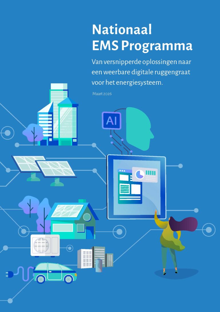 De energietransitie loopt tegen grenzen aan. Het energiesysteem verschuift van centraal naar decentraal en digitaal. Steeds meer assets, zoals elektrische auto’s, warmtepompen, batterijen en zonnepanelen, zitten ‘achter de meter’. Technisch is er veel flexibiliteit en de potentie ervan is enorm, maar het wordt niet genoeg benut, onder andere door ontbrekende randvoorwaarden. Hoog tijd voor grootschalige sturing van vraag en aanbod. EMS’en kunnen hierin een belangrijke rol spelen. Het Nationaal EMS Programma is een programmatische aanpak die moet leiden tot grootschalige sturing van vraag en aanbod: zes tot tien gigawatt aan flexibel vermogen in 2030, zodat het elektriciteitsnet niet meer overbelast raakt.
