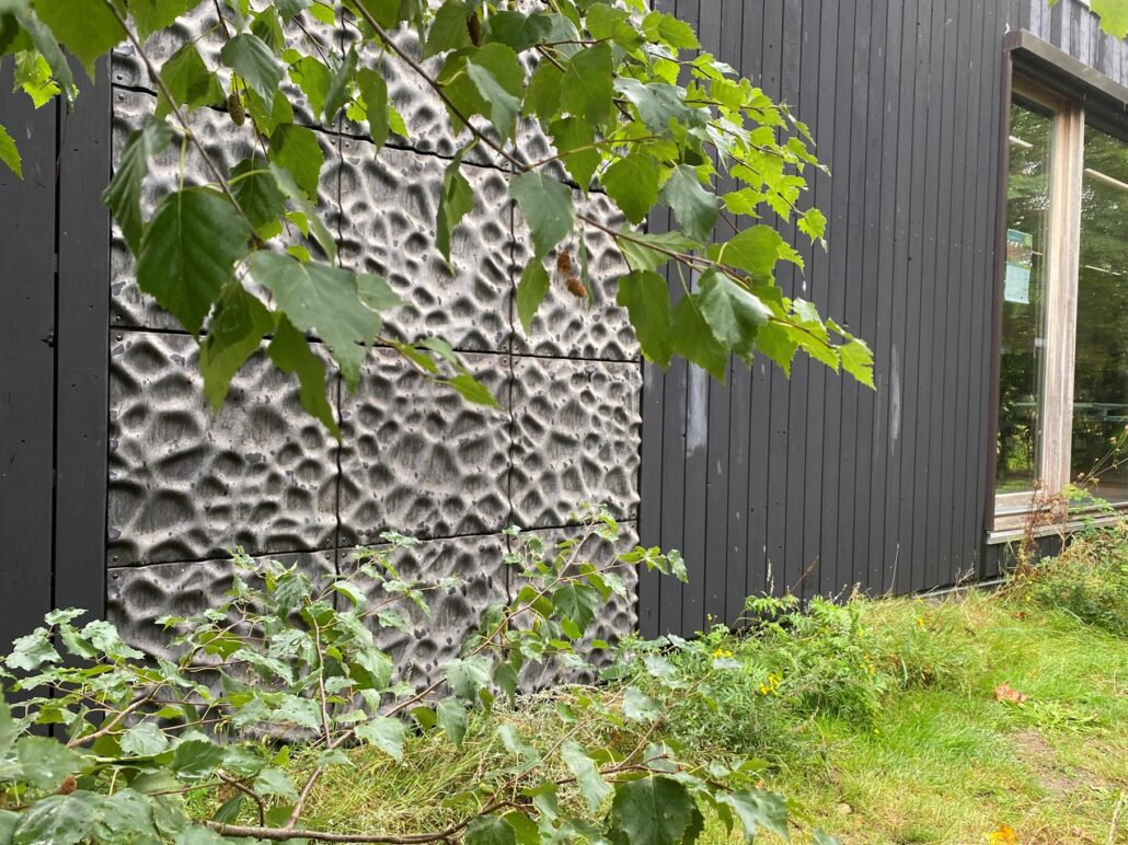 Het gevelpaneel dat aan de achterkant van ons kantoor is bevestigd, is hier een mooi voorbeeld van. Deze is gemaakt van voedselresten. Bij plaatsing was deze glanzend, na driekwartjaar zie je dat deze meer in de natuur opgaat, precies zoals de bedoeling is. Inmiddels is het paneel lichter van kleur geworden en zie je de natuurlijke ingrediënten. Dit komt door weersinvloeden als zon en regen. Echter hebben deze veranderingen geen negatieve invloed op de kwaliteit van het paneel.