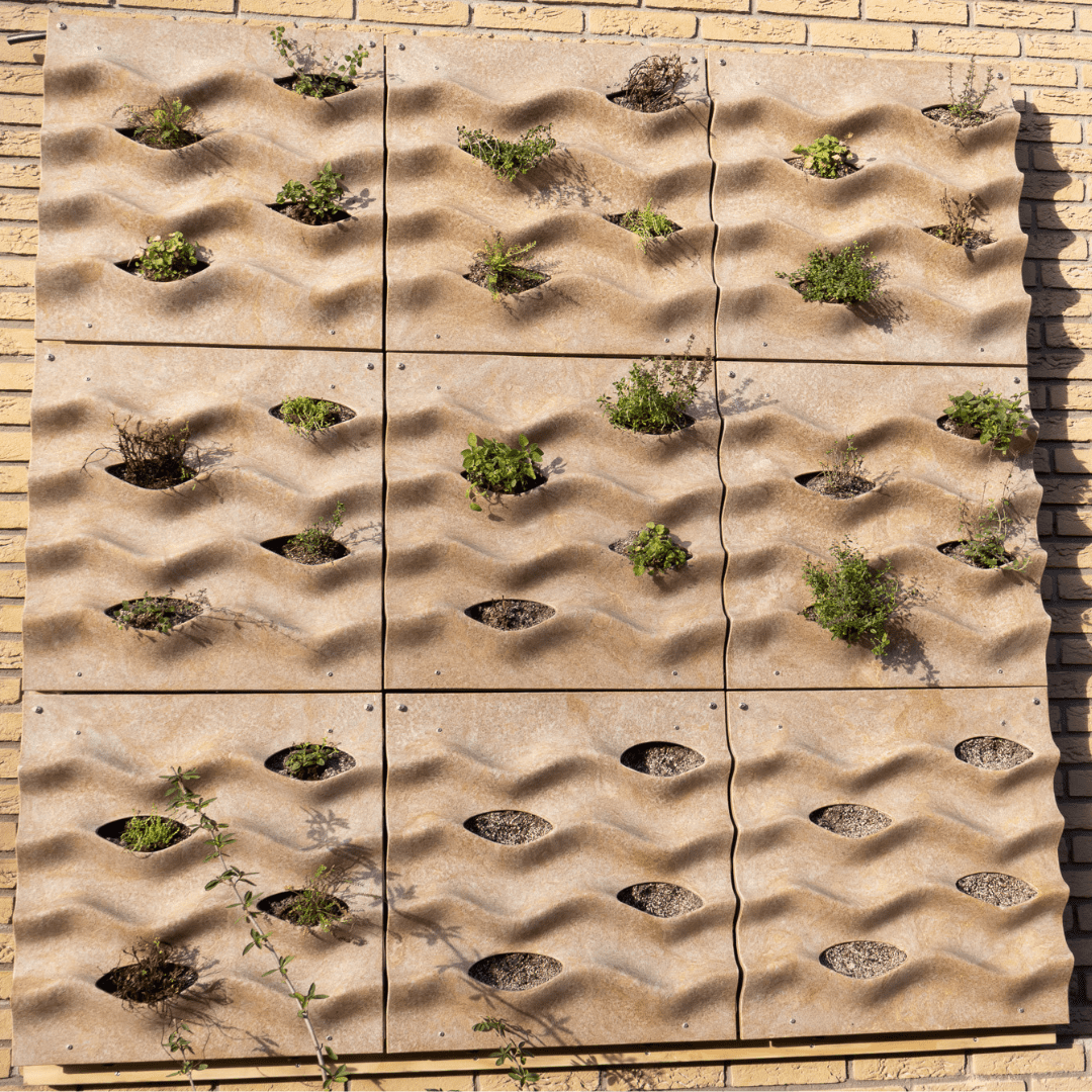 Leafy ontwikkelt lichtgewicht, biobased gevelpanelen waarin planten op een regeneratieve manier groeien. Het systeem bevat levend substraat en een passief irrigatiesysteem en biedt ruimte voor regenwateropvang. Zo draagt het bij aan meer biodiversiteit, minder hittestress en verrgroening van vrijwel elk type gebouw.