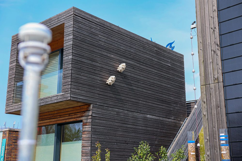 Hun 3D-geprinte vogelnesten leveren verschillende voordelen op voor de natuur in de stad. Door de grillige vorm en de bioreceptieve eigenschappen* zijn ze het onderkomen van de huismus en faciliteren ze tegelijkertijd de groei van algen, mossen en nesten voor insecten. Door zulke slimme aanpassingen te doen in de buitenruimte, creëren we een prettige leefomgeving waarin natuur, dier én mens elkaar versterken.